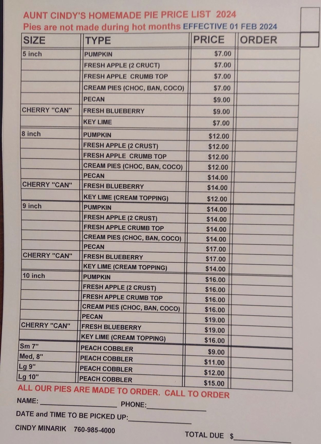 Need Homemade Pies for the holidays. Look no more. Order Aunt Cindy's home made Pies starting the 1st of October through March. Call early